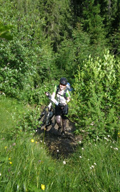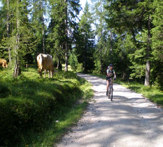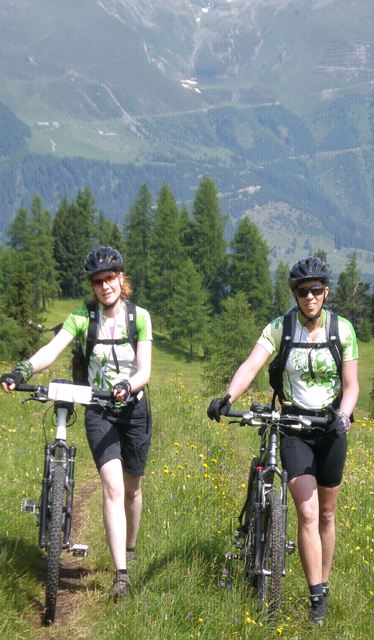 Wiederum zu beginn nur bergauf. Von 315 Hm auf 1.400 Hm, 16 km, inkl. 30 Min. schieben. Rast auf der Rimeralm. Über Platzers und den Gampenpass erreichten wir nach 6 km Abfahrt unser Etappenquartier in Unsere lieben Frau im Walde.