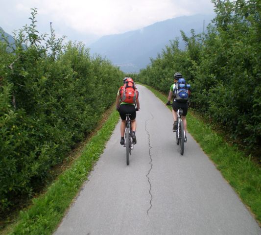 Etschtalradweg mit kilometerlangen Obstplantagen
