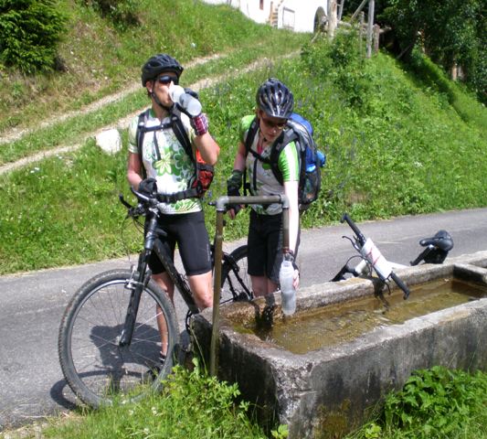 Dann aber 14 km bergauf, inkl. einigen Schiebepassagen, Regenschauer, durch einsame und kleine Dörfer nach Andalo zum Pizza essen. Leider war der anschließende Singletrail (6 km) zum Lago de Molveno bedingt durch Regen nicht durchgehend befahrbar.