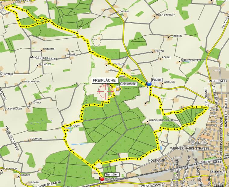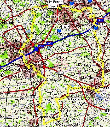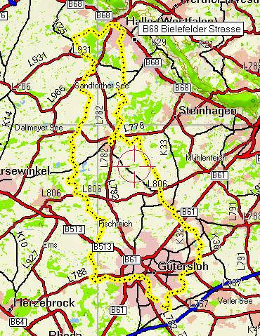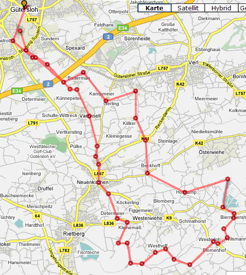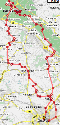 Gütersloh-Postdamm-Isselhorst-Steinhagen-Hilterweg-Upheiderweg bis über die B